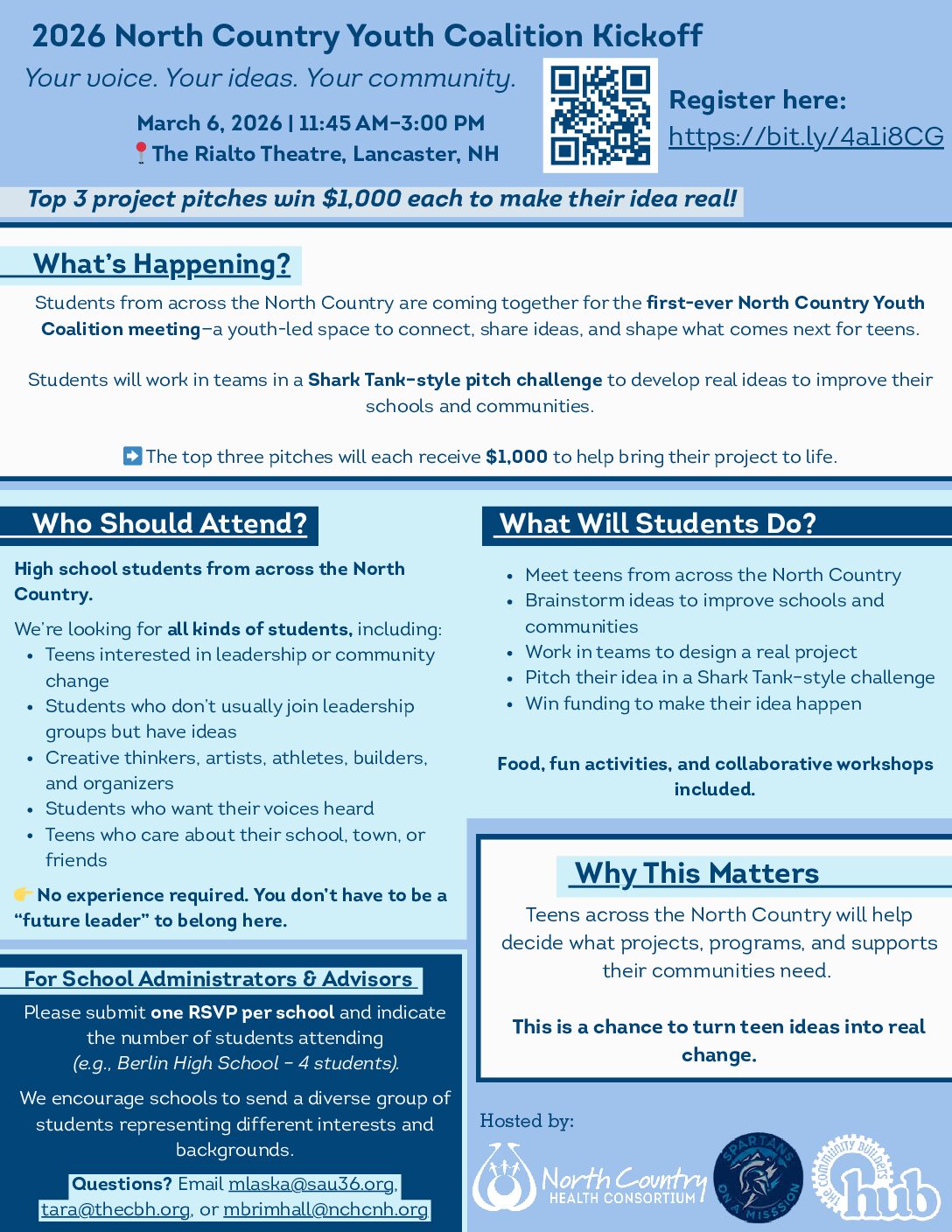 High school students from across the North Country are invited to the first-ever North Country Youth Coalition meeting — a youth-led space to connect, share ideas, and create real change.